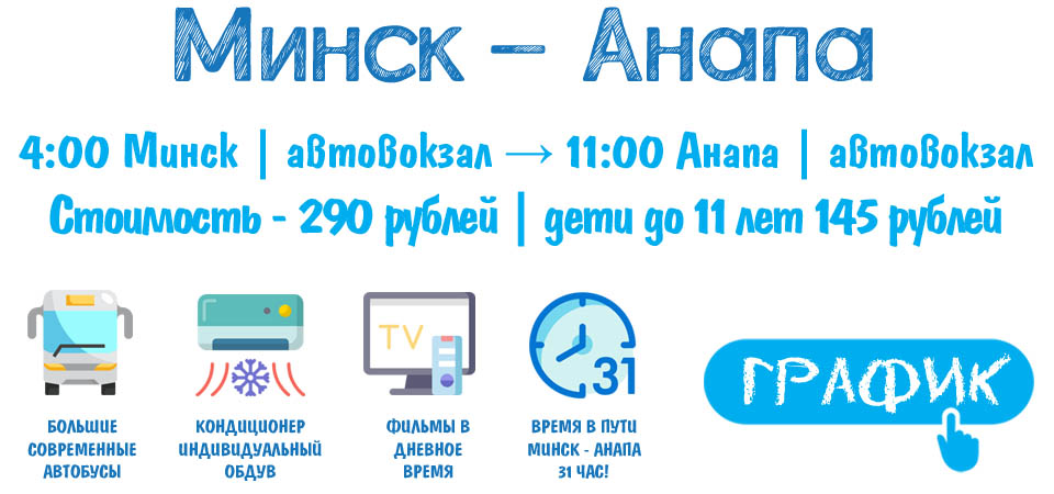 - Цена билета на автобус Минск – Анапа 290 белорусских рублей